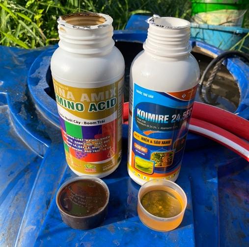 Pha 240ml RD-Antlion 44EC / 200 lít nước + Bombigold 500WG 100g/200lít nước + Amino Acid 250ml / 200 lít nước