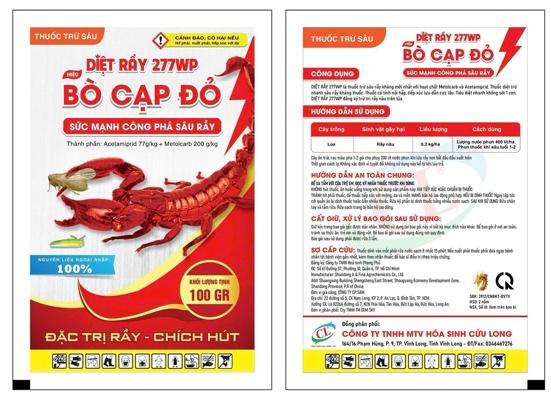 ∙ Sản phẩm Diệt rầy 277WP (Acetamprid 7,7% + Metolcarb 20%) liều lượng 100 – 200g/ 200 lít nước là thuốc trừ sâu rầy kháng thuốc. Thuốc có tính tiếp xúc, nội hấp, lưu dẫn cực lâu tiêu diệt nhanh không sót 1 con. Diệt rầy 277WP dùng để quản lý tốt Rầy xanh, rệp sáp, sâu xanh.