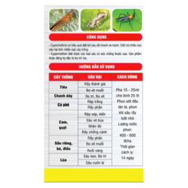 Cypermethrin là một hoạt chất nhóm Cúc tổng hợp. Có phổ tác động rộng, hiệu lực diệt sâu nhanh, hiệu quả cao, kéo dài.