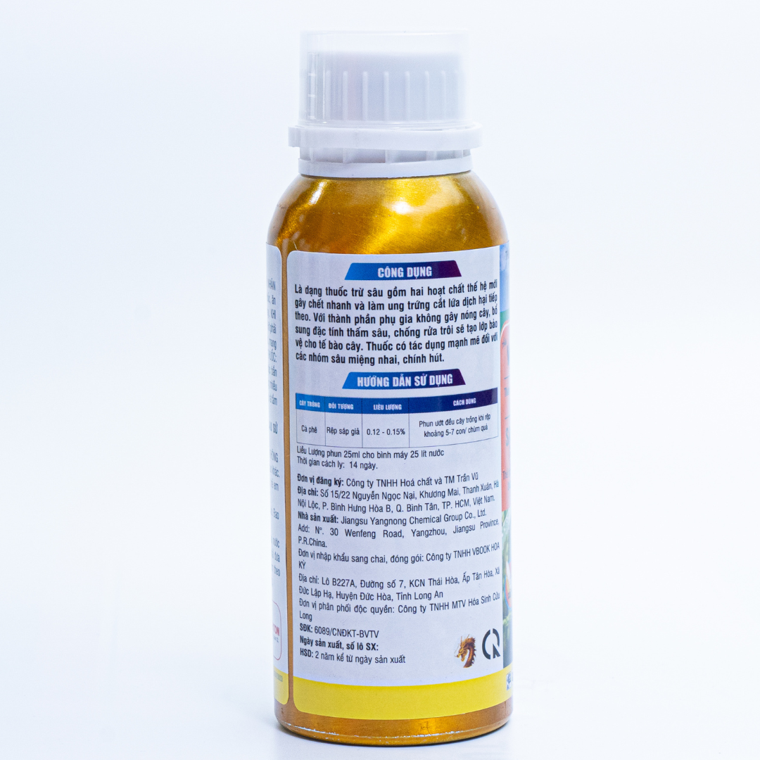 Là dạng thuốc trừ sâu gồm hai hoạt chất thế hệ mới gây chết nhanh và làm ức chế trứng cắt lứa dịch hại tiếp theo.Với thành phần phụ gia không gây nóng cây, bổ sung đặc tính thấm sâu, chống rửa trôi sẽ tạo lớp bảo vệ cho tể bào cây.